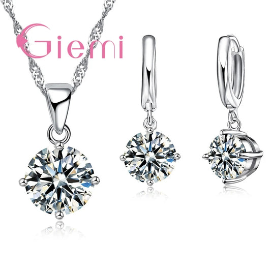 925 Sterling Silver Crystal Water Drop Necklace Earrings Set