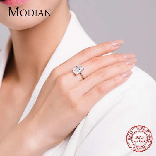 Solid 925 Sterling Silver Classic Rectangular Ring
