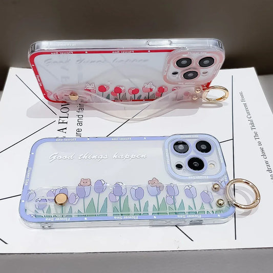 Cute Tulip Wrist Strap Case For Samsung
