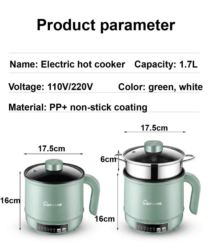 This electric multi cooking pot prepares meals using a compact countertop design suitable for everyday home cooking. It supports boiling, simmering, steaming, and reheating through simple temperature-controlled operation. The pot features a non-stick inner surface, glass lid, and electric heating base for controlled cooking results. Its all-in-one structure makes it practical for kitchens, small apartments, and flexible meal preparation.