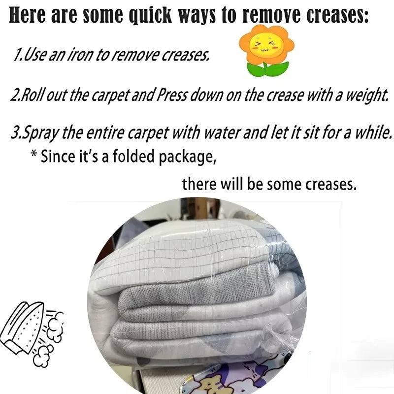 1. Material: The carpet is made of Flannel . It is soft, comfortable, Skin-friendly, environmentally friendly and moisture-absorbing.