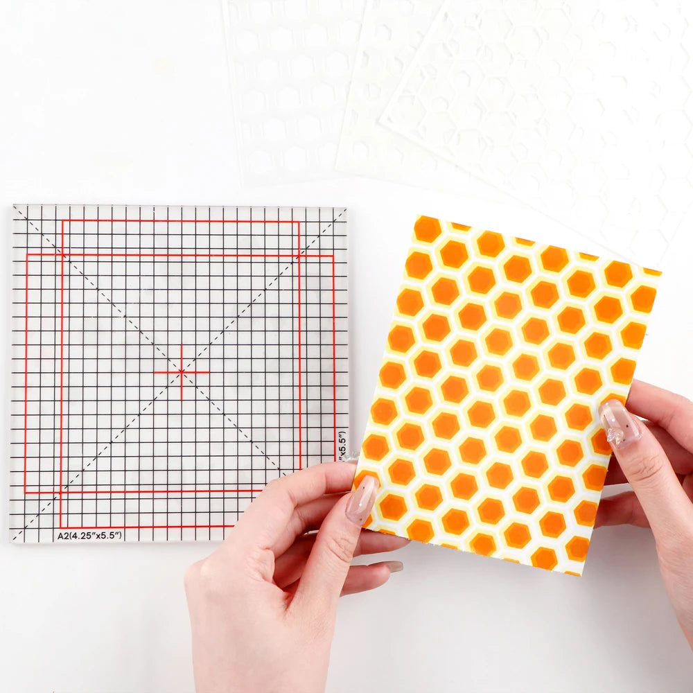This photopolymer grip mat is designed to securely hold paper, cardstock, stencils, and dies in place during stamping, ink blending, and craft positioning. Made from naturally tacky photopolymer material, it provides reliable grip without the need for tape, glue, or adhesives, allowing cleaner work and faster setup. The transparent surface with printed guide markings helps with accurate alignment and centering, making it ideal for use inside stamp positioning tools or directly on work surfaces. The mat can replace traditional foam inserts and supports precise techniques such as layering, masking, and wreath building. Easy to maintain, the grip can be refreshed by rinsing with water when needed. A protective transparent sheet is included for safe storage when not in use.