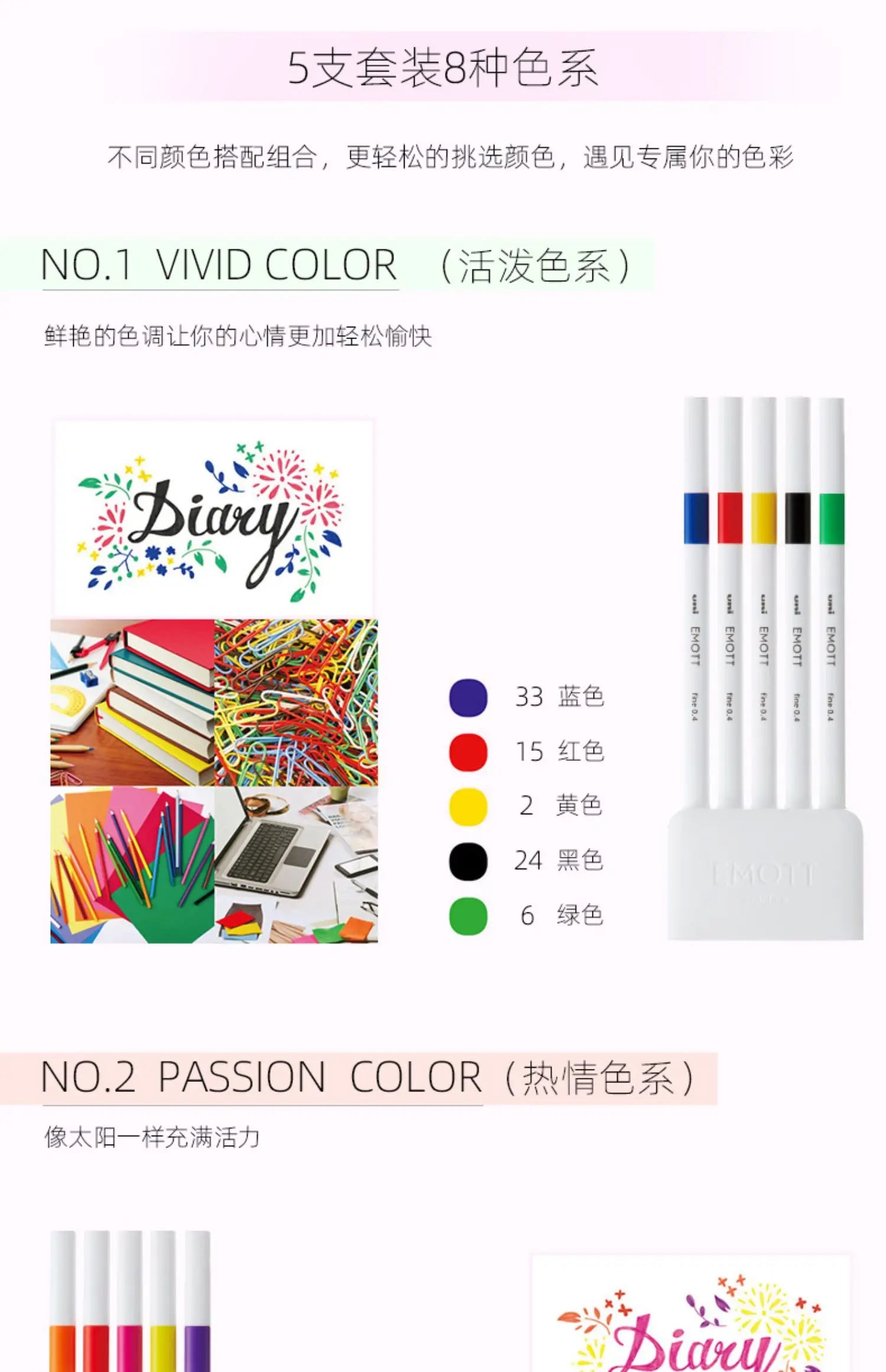 5pc Uni EMOTT Fiber Marker Pen water-based