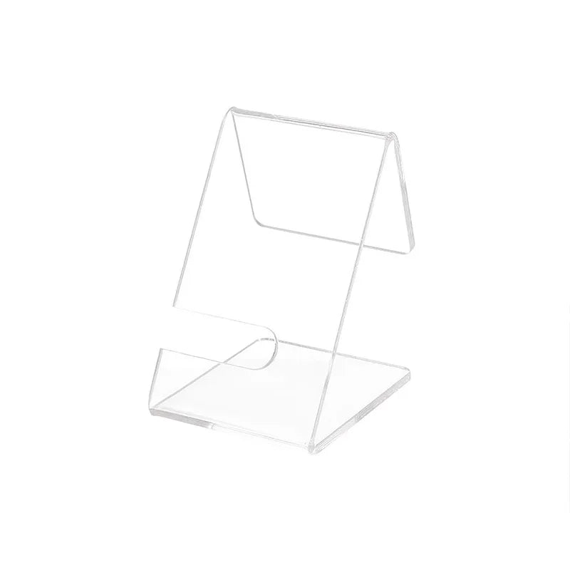 This clear acrylic watch display stand is designed to present a single wristwatch in a clean, elegant, and professional way.