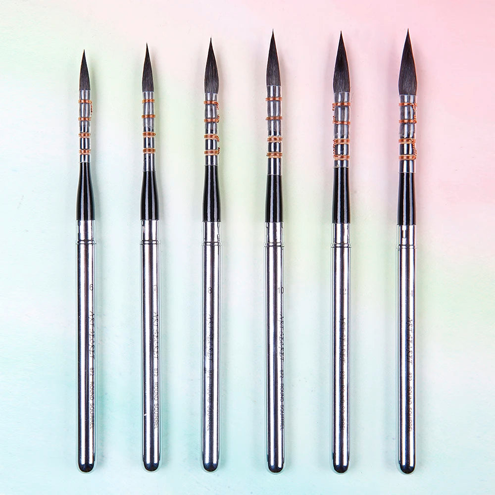This travel brush set consist of 6 different sizes of Round brush #6, #7, #8, #10, #12, #14,
