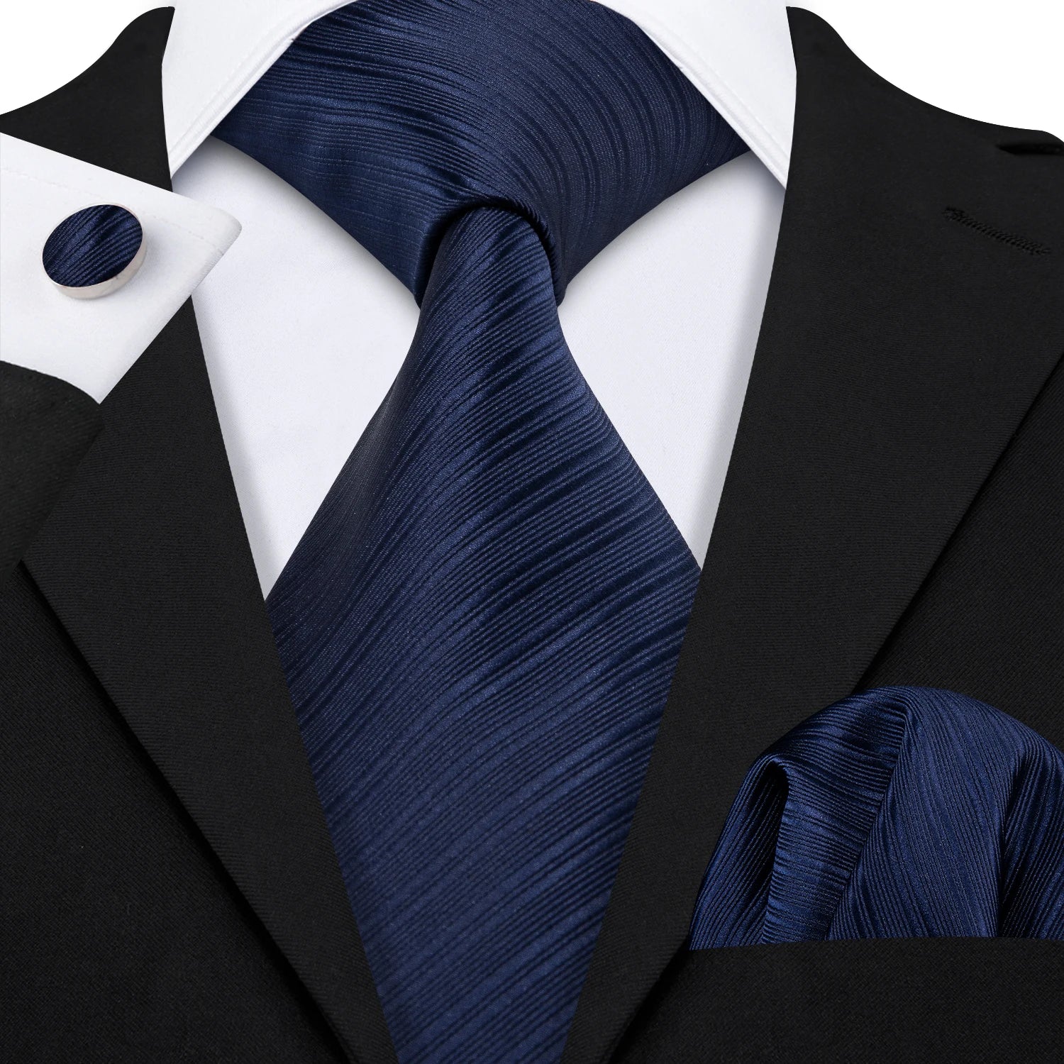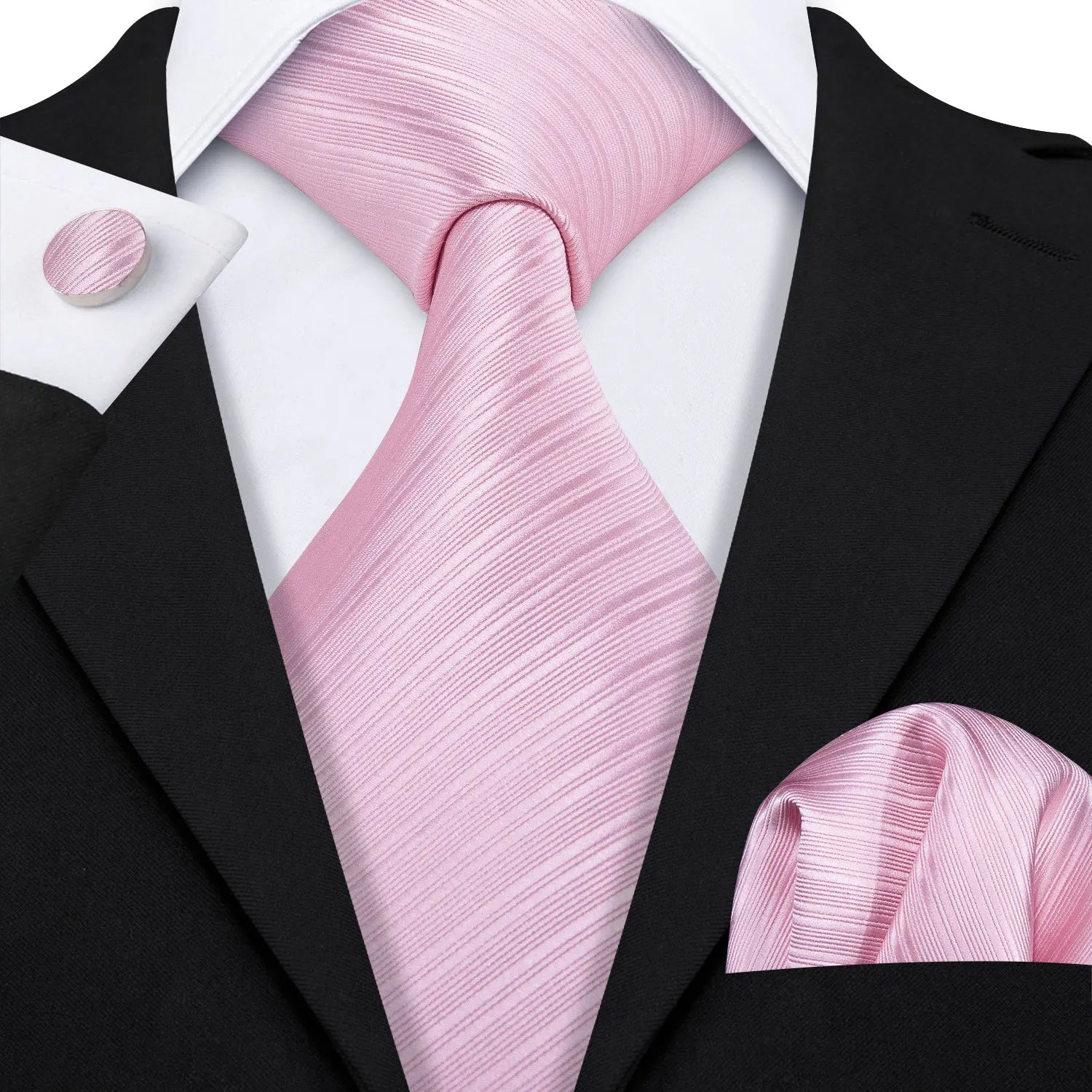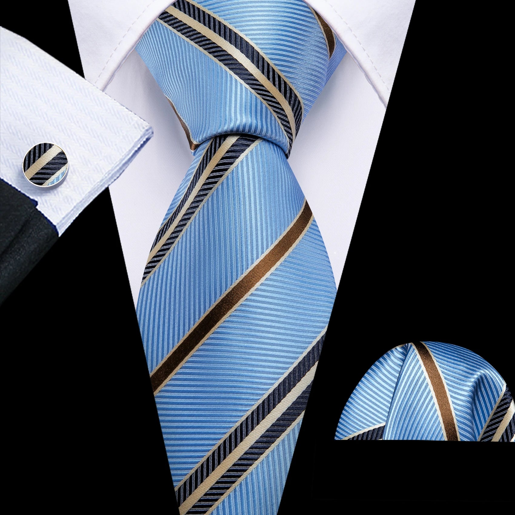 Barry Wang Jacquard Striped Silk Men's Tie Pocket Square Cufflinks Set