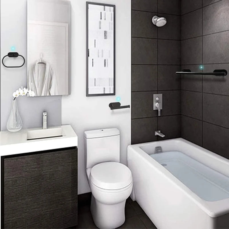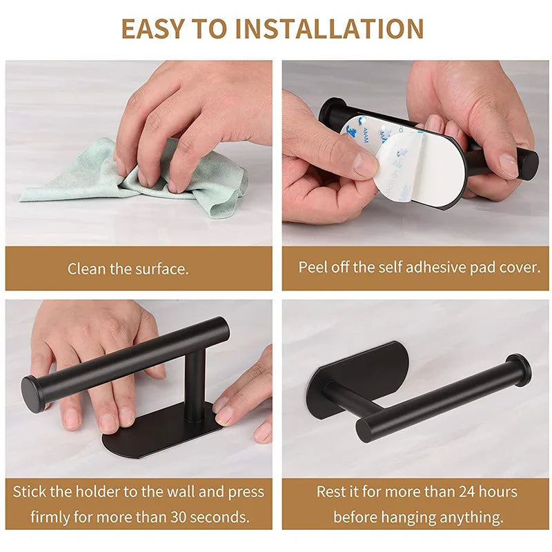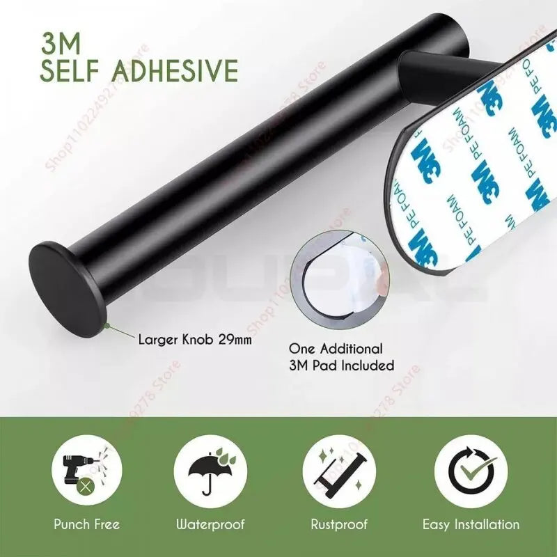 Non drilling stainless steel self-adhesive towel strip paper holder robe hook towel ring black silver gold bathroom accessory set