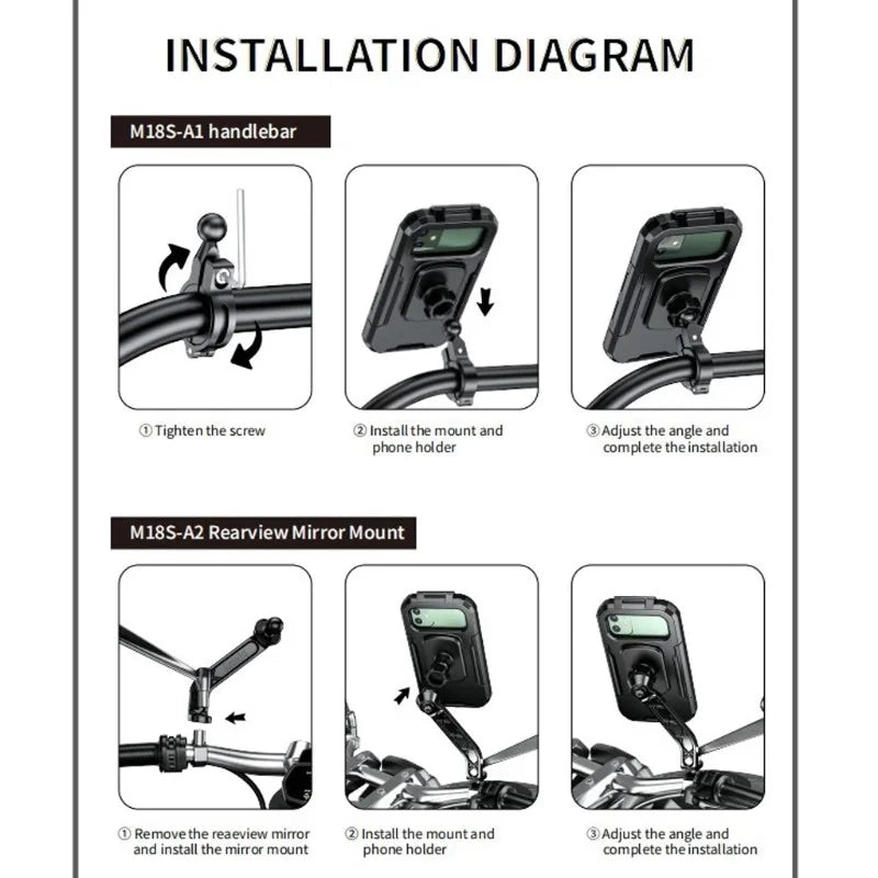 The Phone case on your phone Protect your mobile phones form water to IPX8. Mount on your biycle or motorcycle's handlebar.