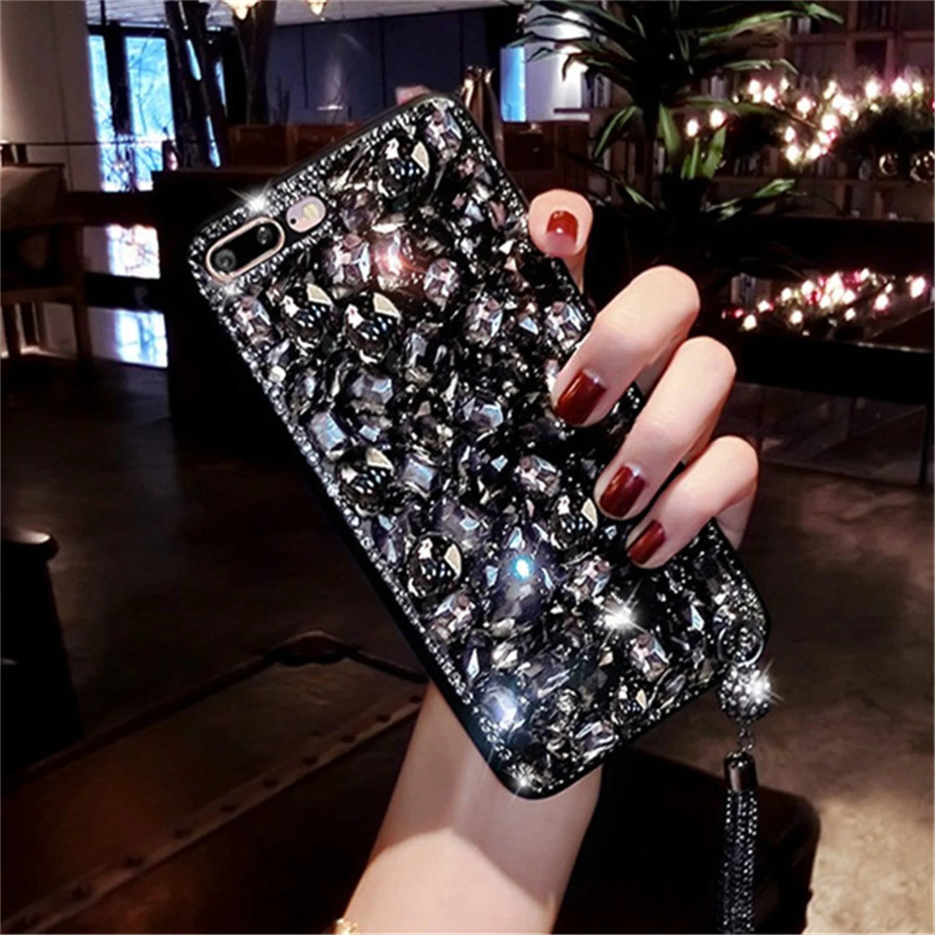 Bling Jewelled Rhinestone Crystal Diamond Soft Back Pendant Phone Case Cover For iPhone13 12 11 Pro MAX X 6 7 8 Plus 5 XR Xs Max