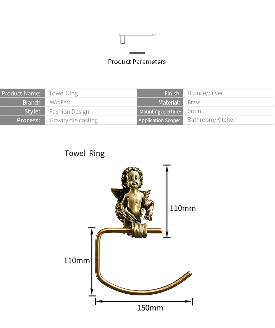 Bronze Color Classic Angel Towel Ring Home Deco Premium Brass Gold Towel Holder for Bathroom Wall Towel Rack MB-0786B