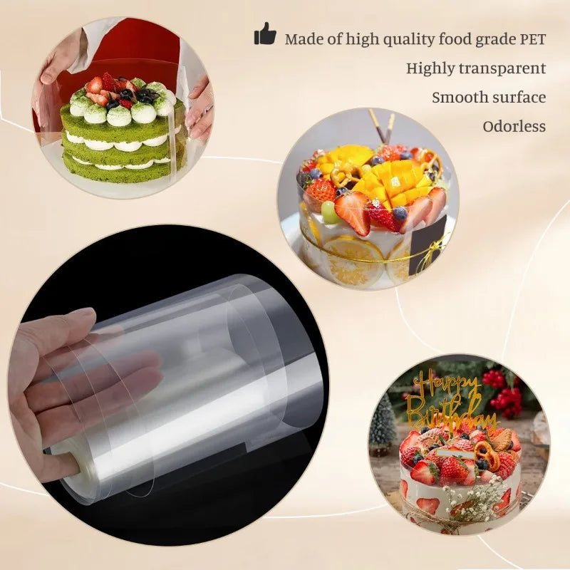 These clear cake collars are the perfect tool for creating professional mousse cakes and beautifully decorated pastries. Made from food-grade acetate the transparent roll allows for easy shaping and smooth edges on cakes. The non-stick surface ensures effortless removal making it an essential tool for bakers and dessert lovers.