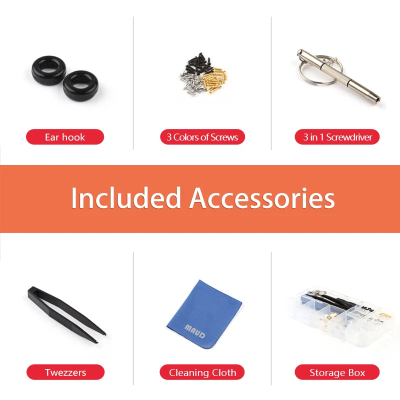 Included Components: Screws, Nose Pads, Screwdriver, Tweezers, Cleaning cloth