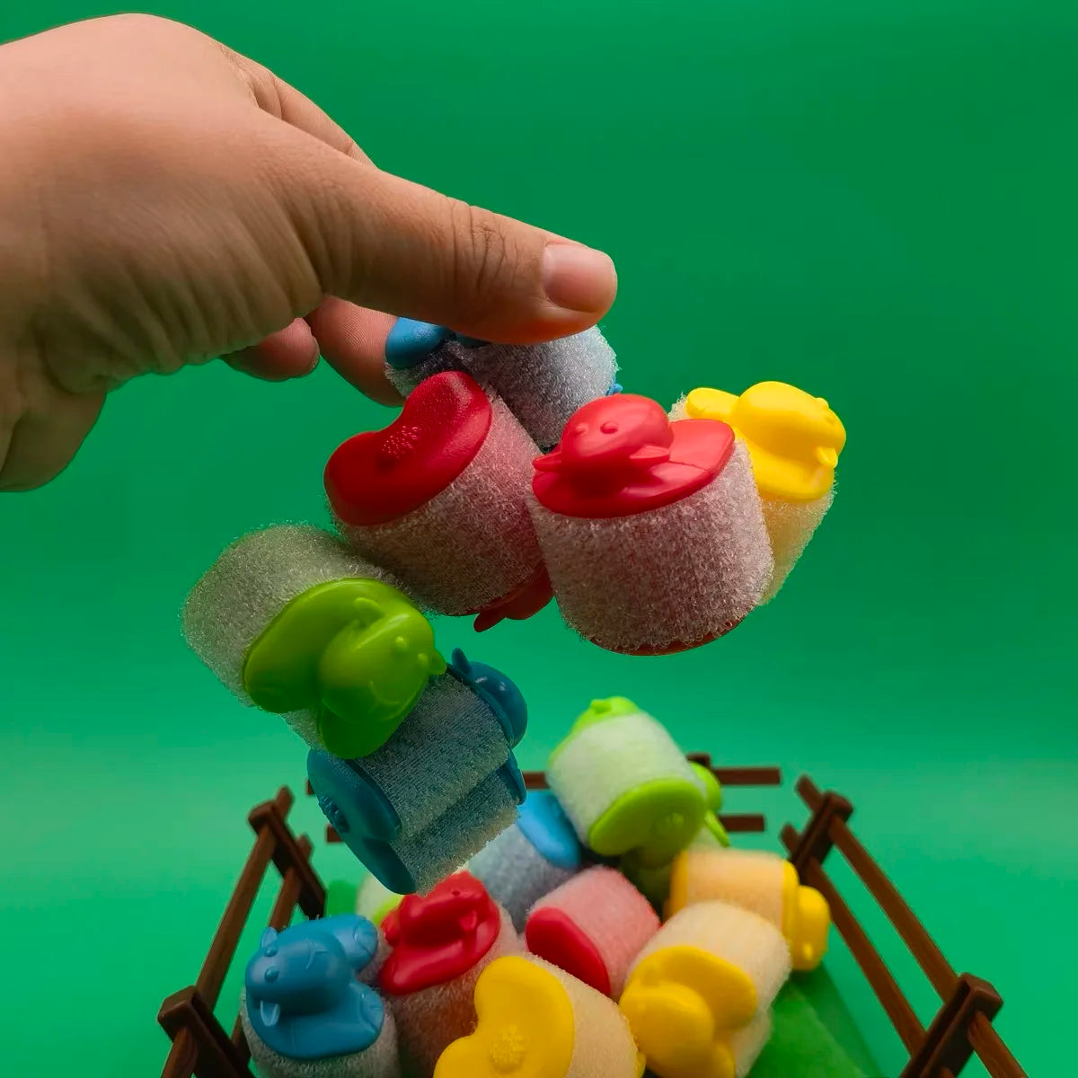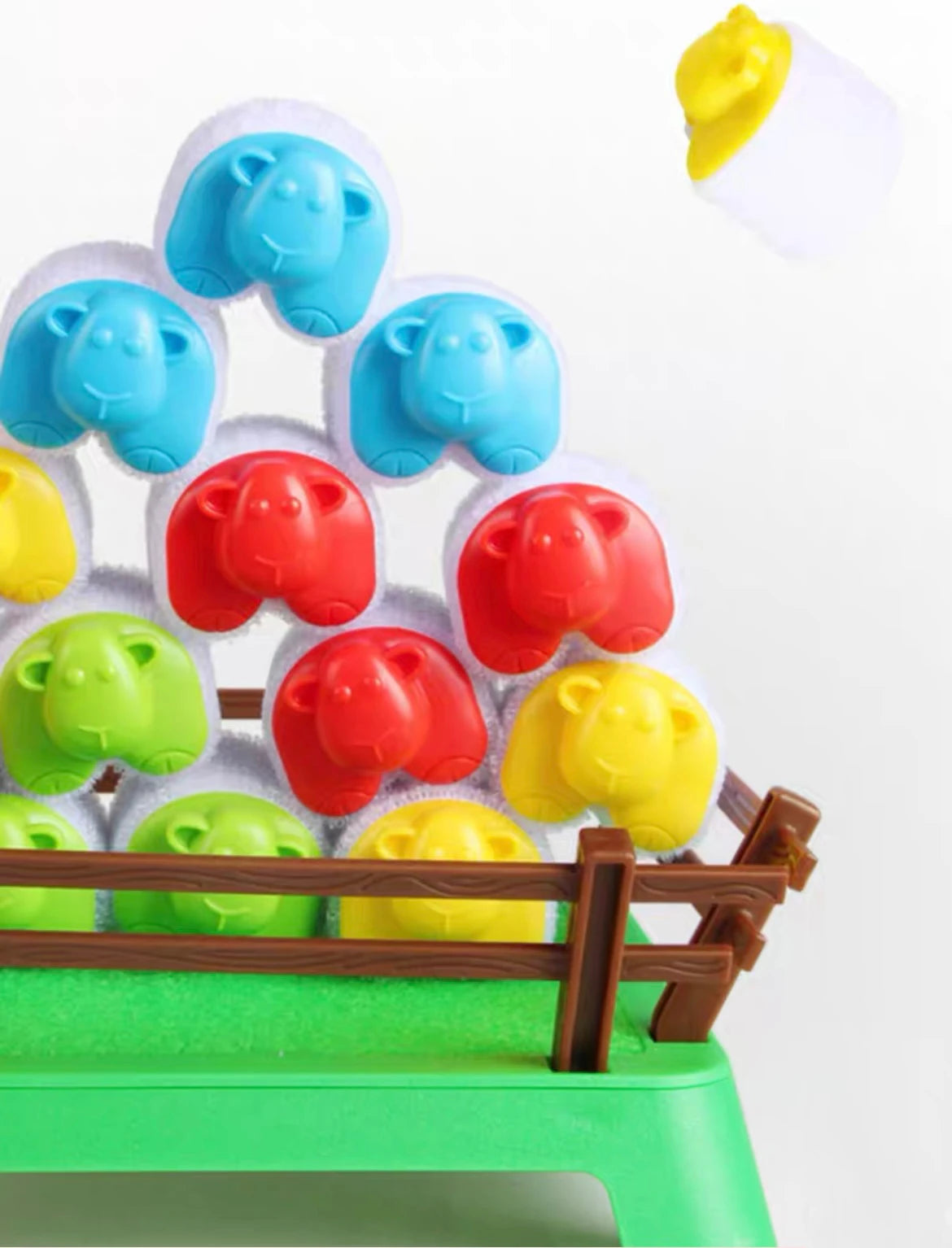 The first player to successfully land, stick, or pile all of their sheep into the pen or onto the other sheep in the pen wins the game!