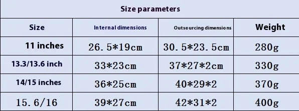 13.3-13.6inch : 33*23 cm