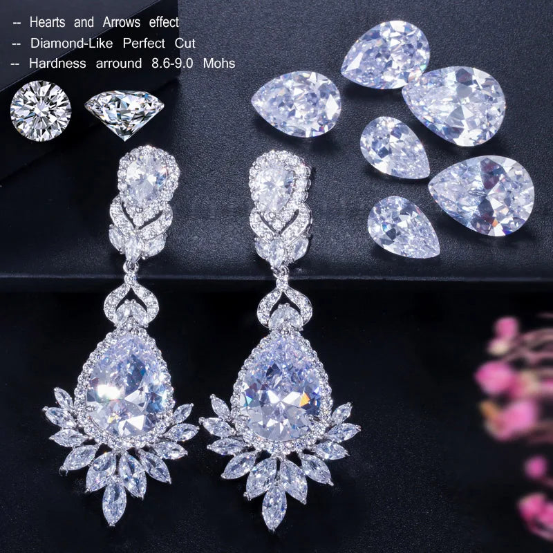 CWWZircons Elegent Evening Dinner Part Wedding Jewelry Luxury Long CZ Crystal Big Drop Dangle Earrings For Brides CZ055