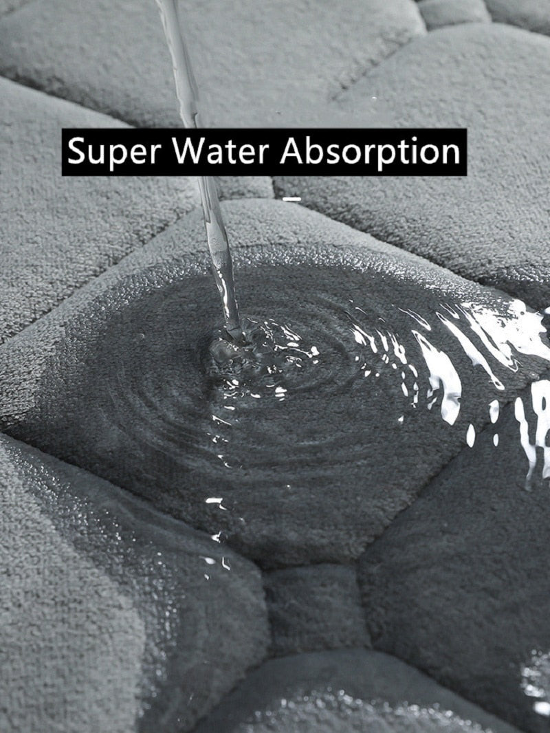 The extremely plush top layer of the Memory Foam Bath Rug traps and absorbs extra water in your bathroom,helping to keep your floors clean and dry. It’s an ultra-absorbent bath mat soak up an impressive amount of excess water quickly and efficiently, to keep your floor clean and slip-free.