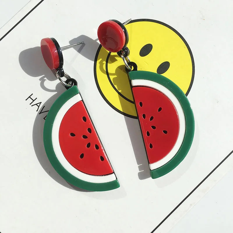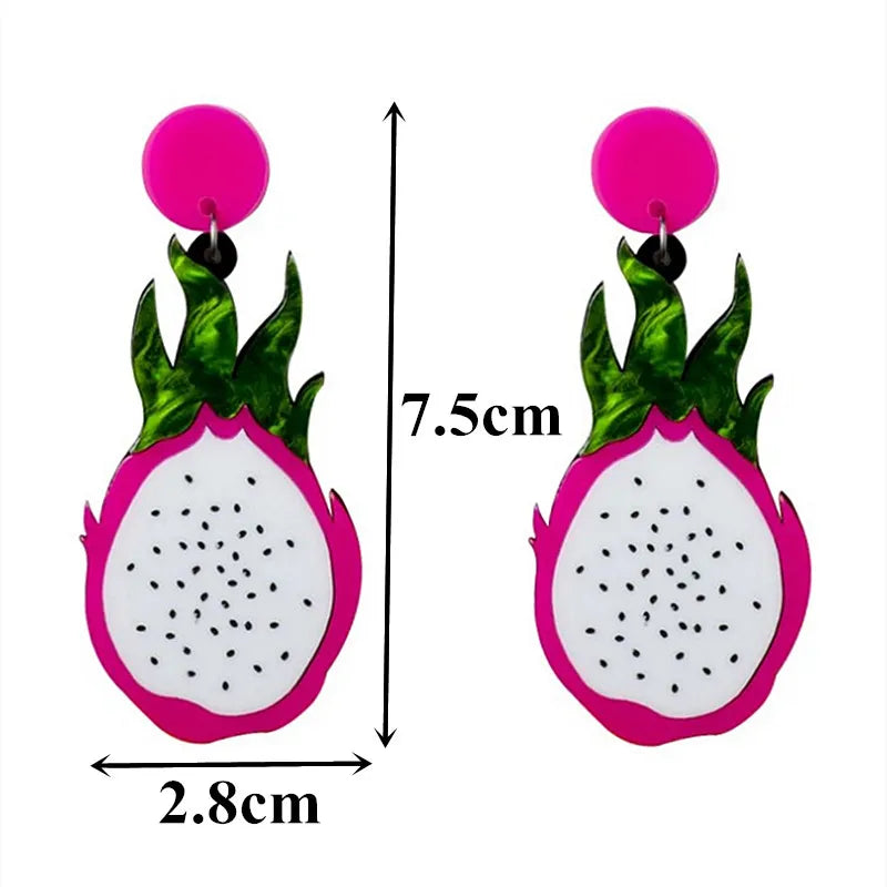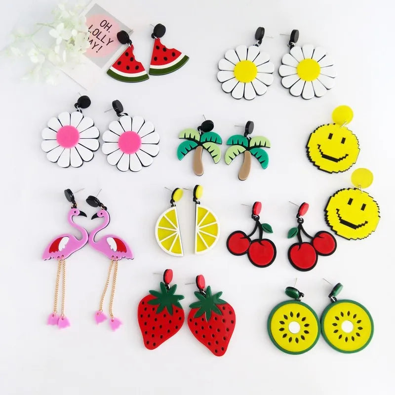 Acrylic Fruit Drop Earring: Sweet Strawberry Apple Orange Kiwi Watermelon Peach Banana Dangle Earrings