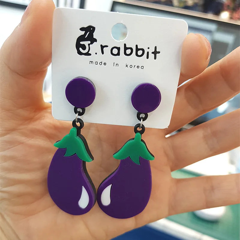Cute Simulation Fruit Vegetables Acrylic Earrings: Funny Avocado Lemon Strawberry Pomegranate Cauliflower Eggplant Creative Gift