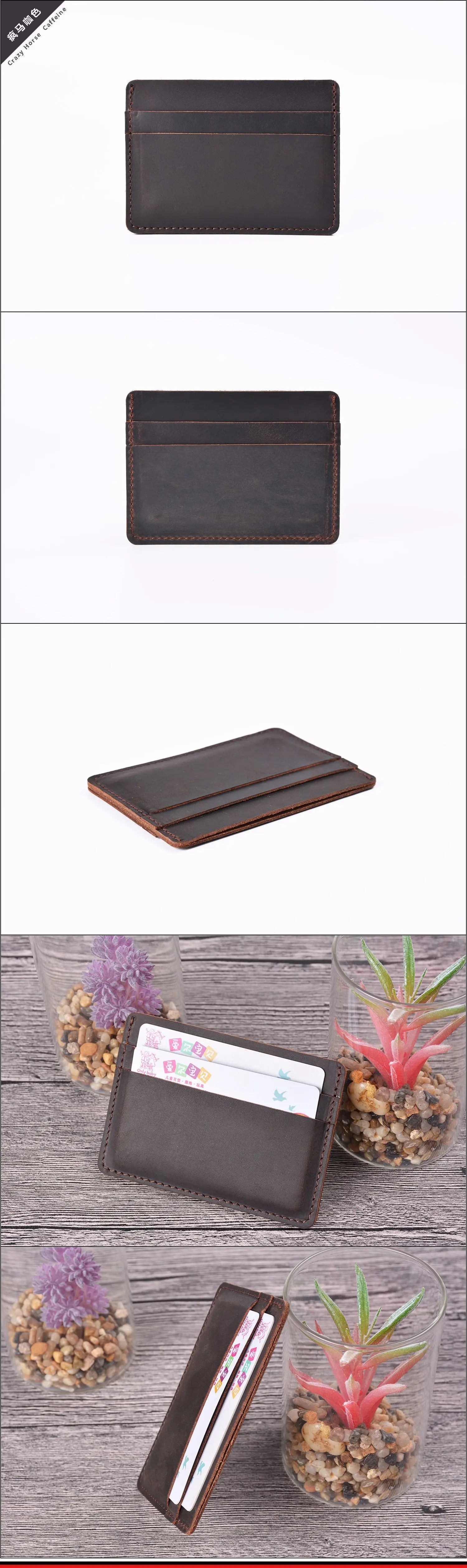 This genuine leather card holder is crafted from cowhide leather with a vintage finish, designed for everyday use and long-term durability. Its slim, minimalist profile fits easily in pockets while securely holding essential credit, debit, and ID cards. The solid leather construction develops natural character over time, making each piece unique. Suitable for both men and women, this compact wallet is ideal for business, travel, and daily carry without unnecessary bulk.
