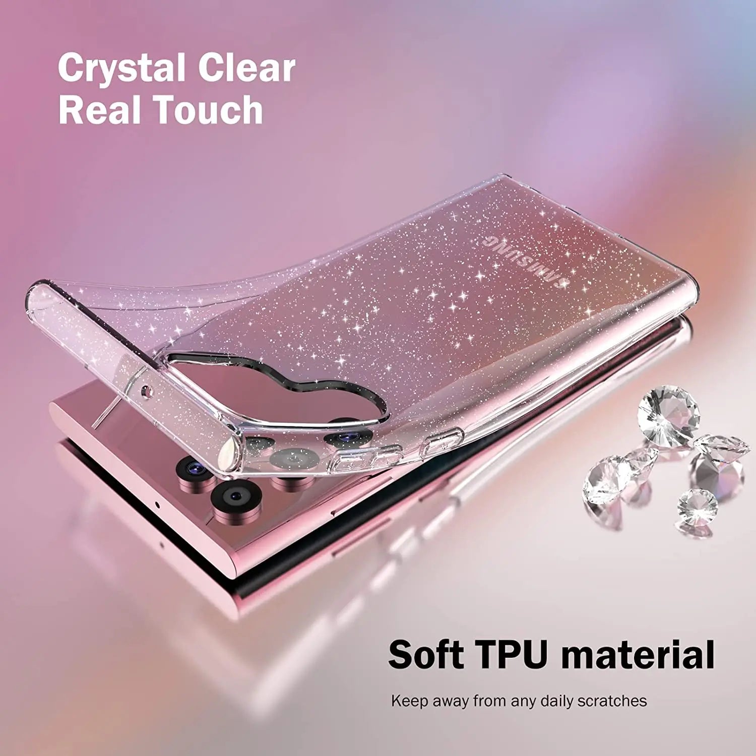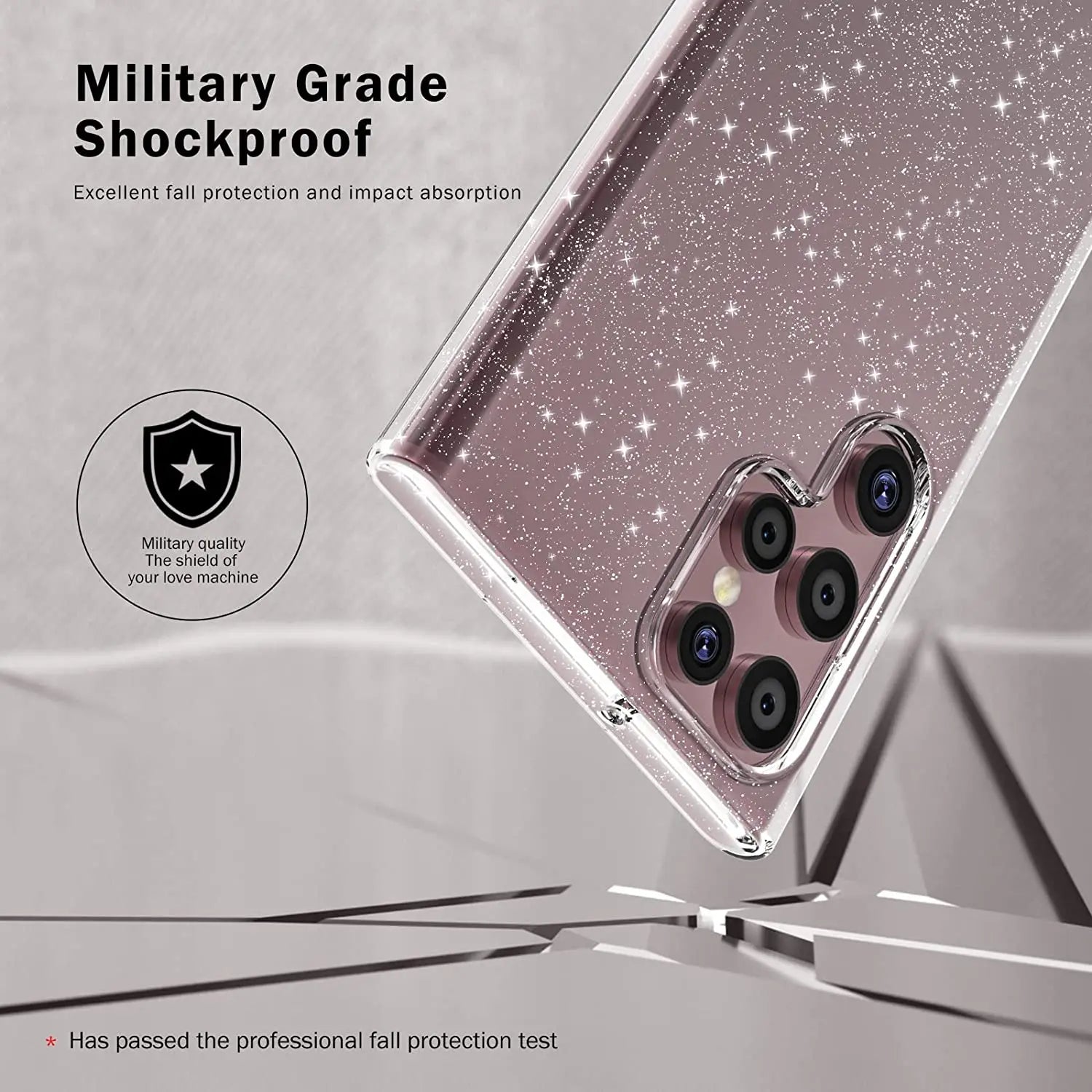 Original Luxury Brand Shiny Glitter Clear Phone Case For Samsung Galaxy S22 Ultra 5G S21 Plus S20 FE A53 A52 A13 A51 Note 20 Cute Transparent Silicone Cover Accessories