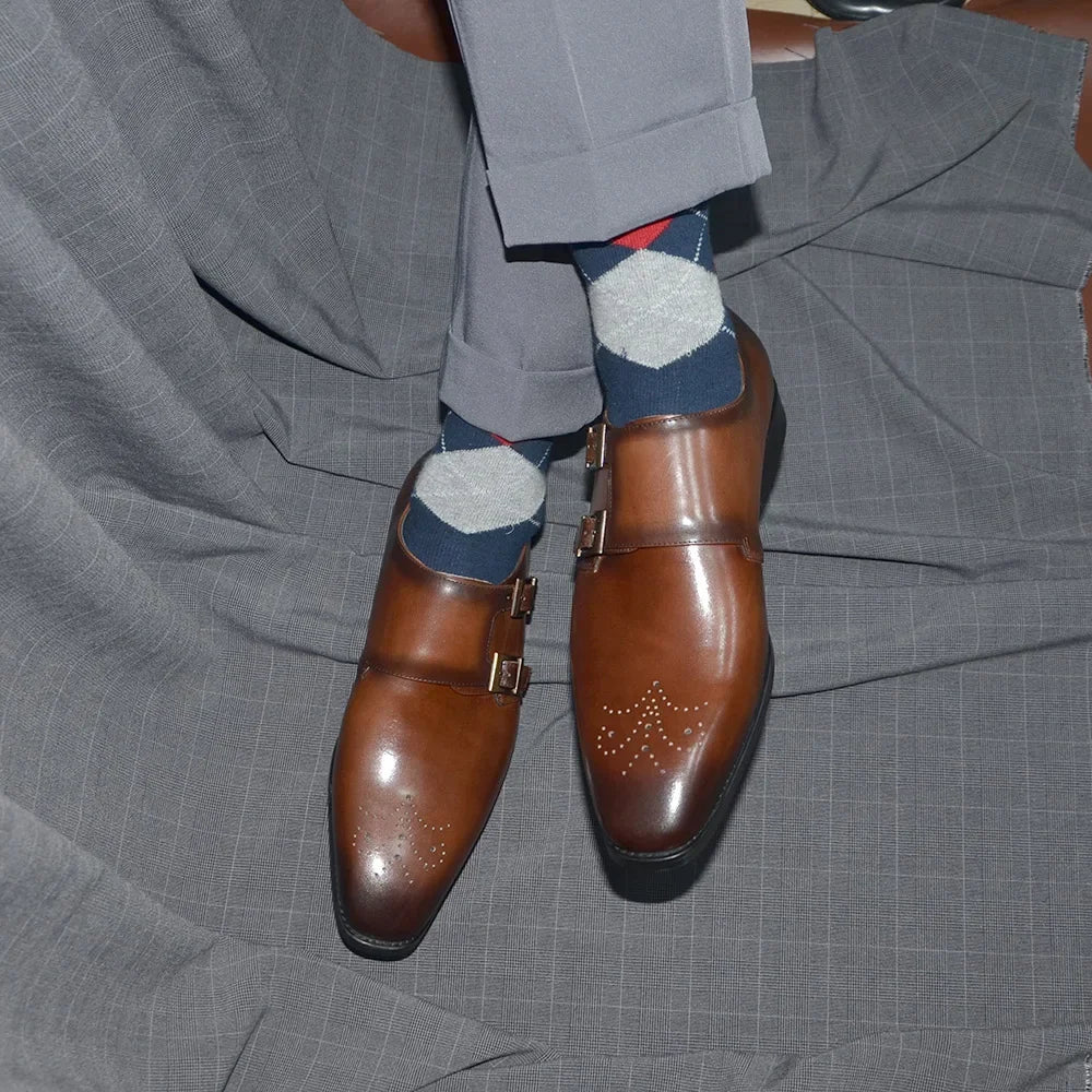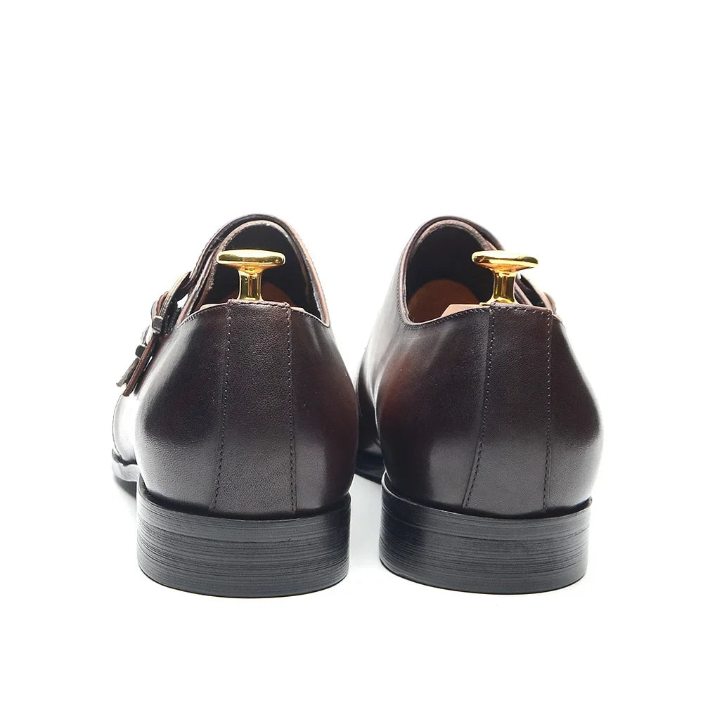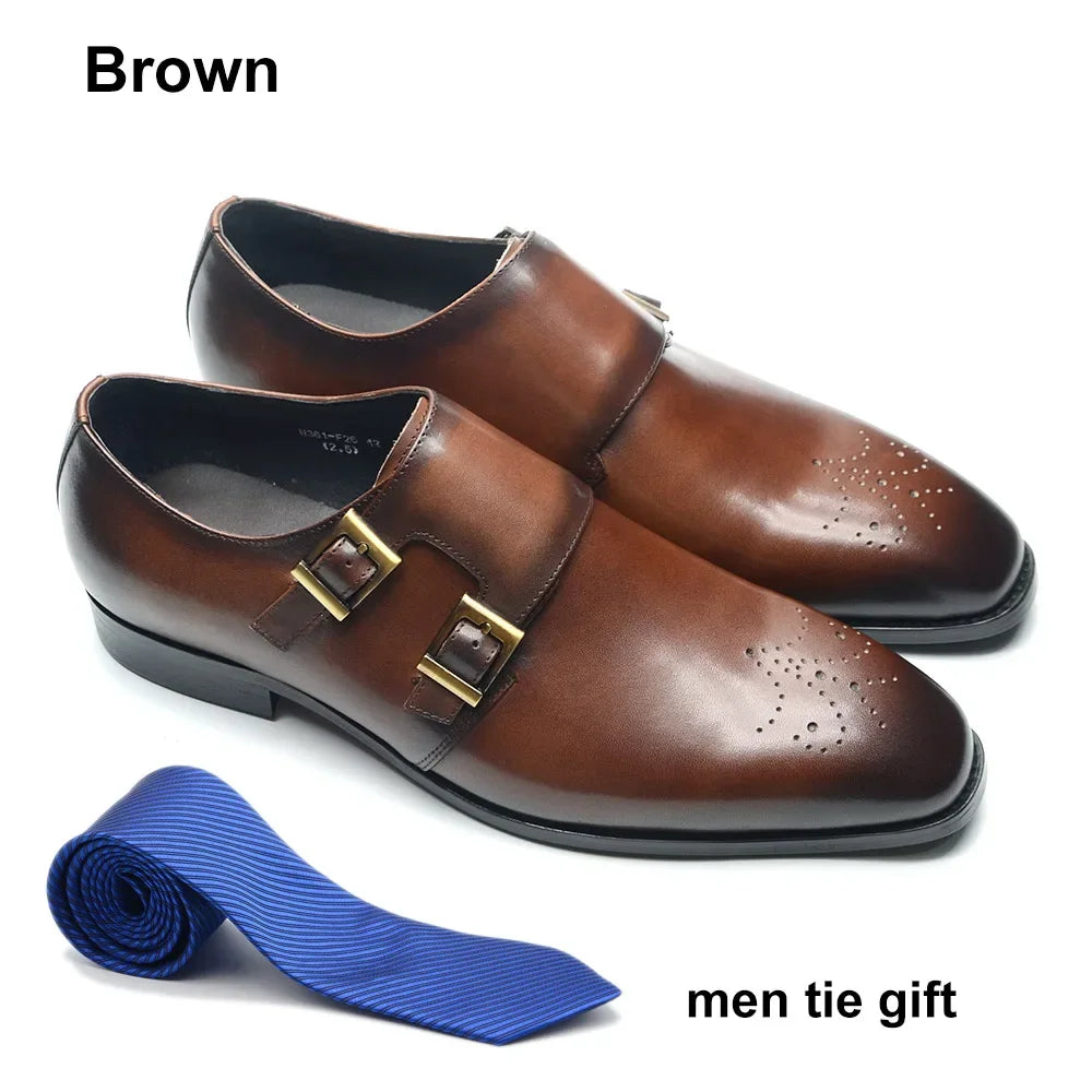 Italian Style Luxury Genuine Leather Monk Strap Men Formal Shoes Double Buckles Plain Pointy Toe Business Office Dress Shoes