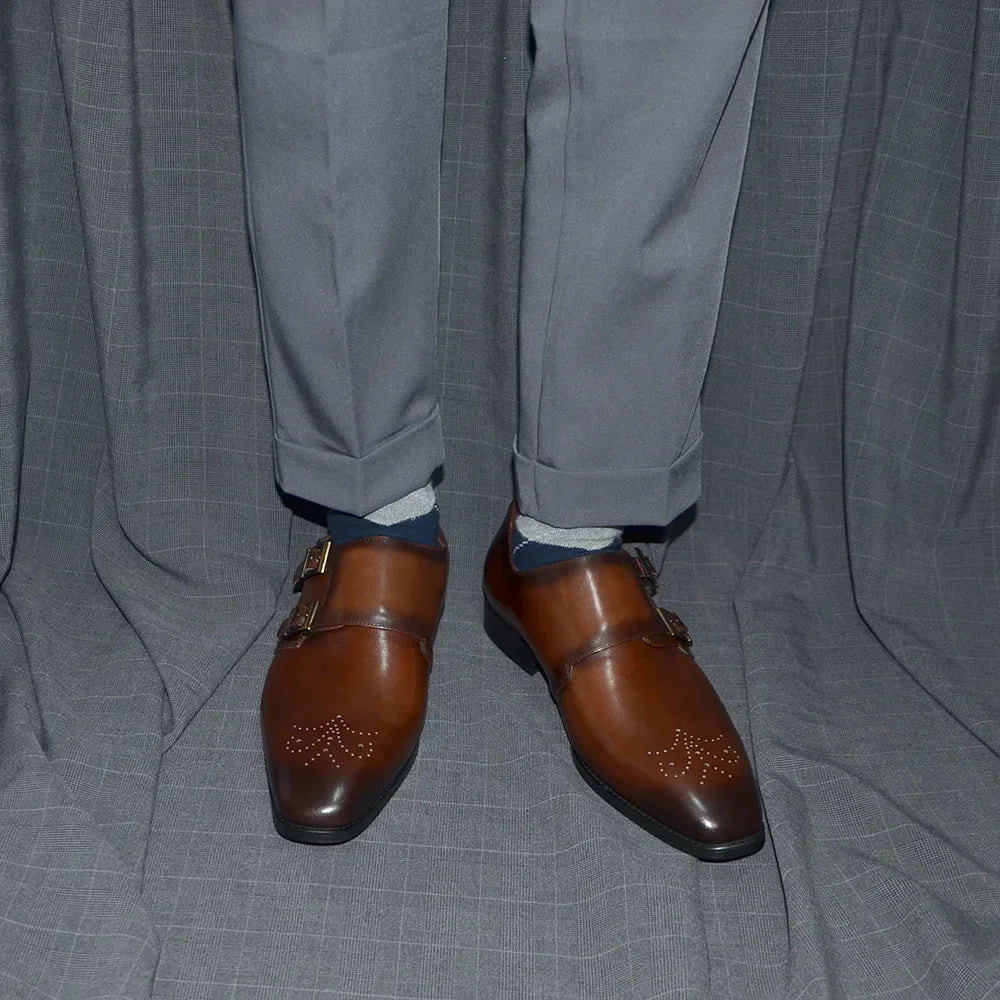 7. Exquisite cow leather with double buckles delivers a monk strap classic style.