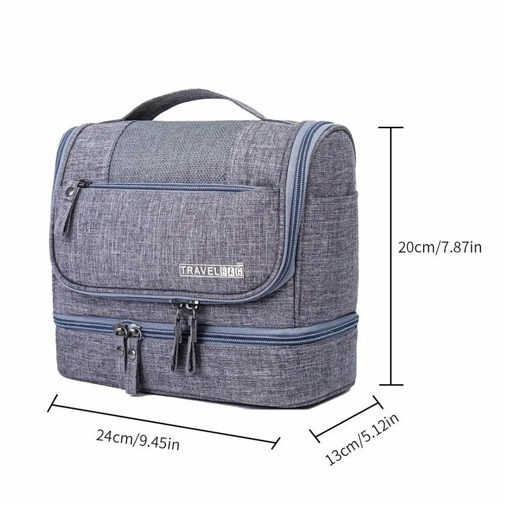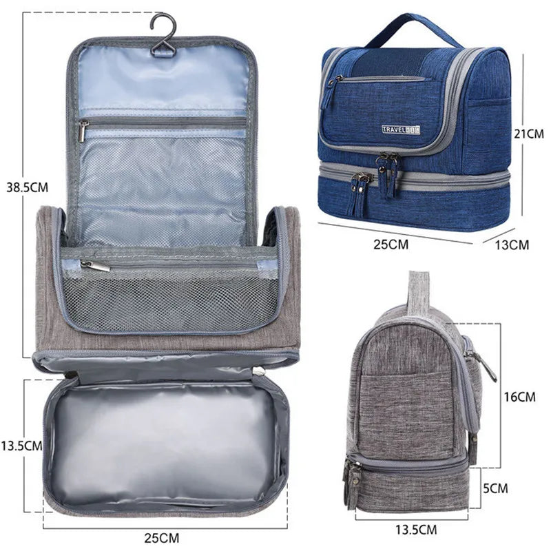 This hanging travel toiletry organizer bag is designed to keep grooming and personal care items neatly arranged during trips, overnight stays, or everyday use.