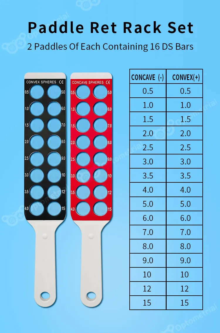 ● Sphere: 32 lenses altogether (16 in each bar), 2 bars for each of concave (-) and convex (+)