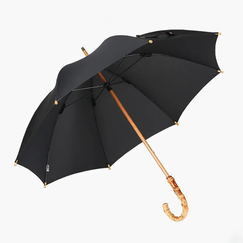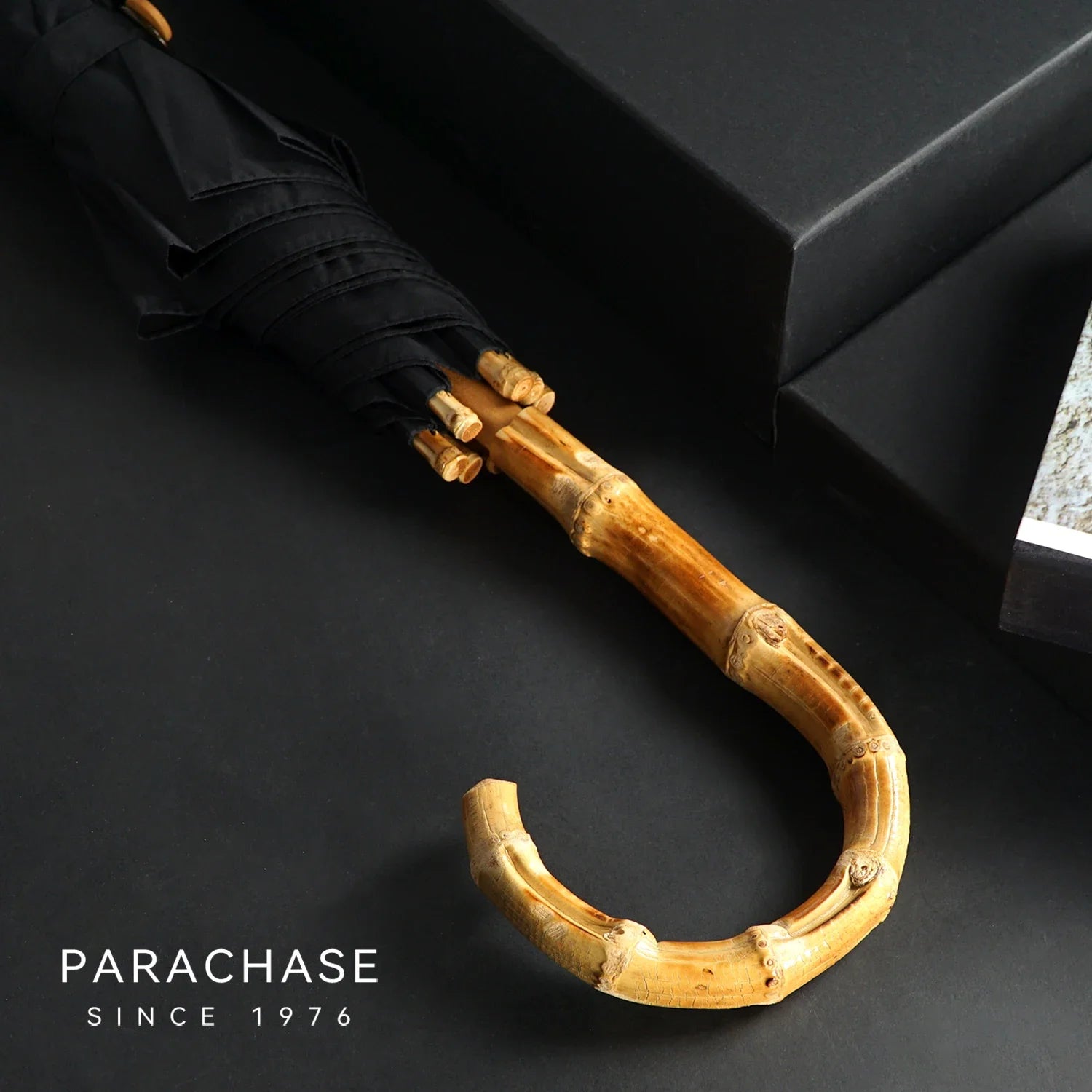 PARACHASE classic bamboo long handle umbrella for men, excellent workmanship and high grade quality material, windproof and waterproof, business style stick umbrella.