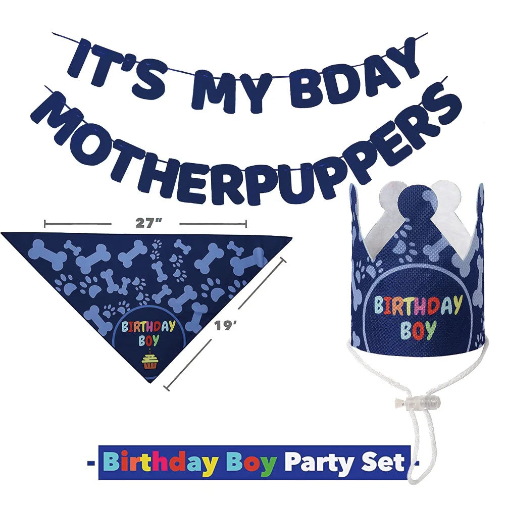 Pet Decoration Dog Birthday Party Flag Hanging Banner Hat Cap Headgear Neckerchief Bib Saliva Scarf Drool Towel Props Supplies