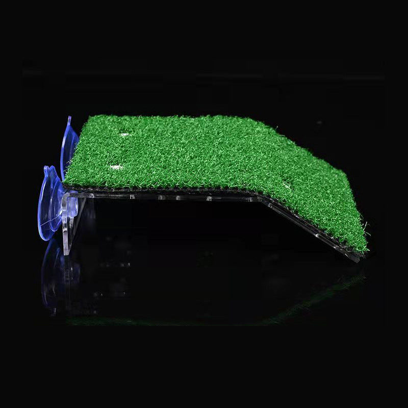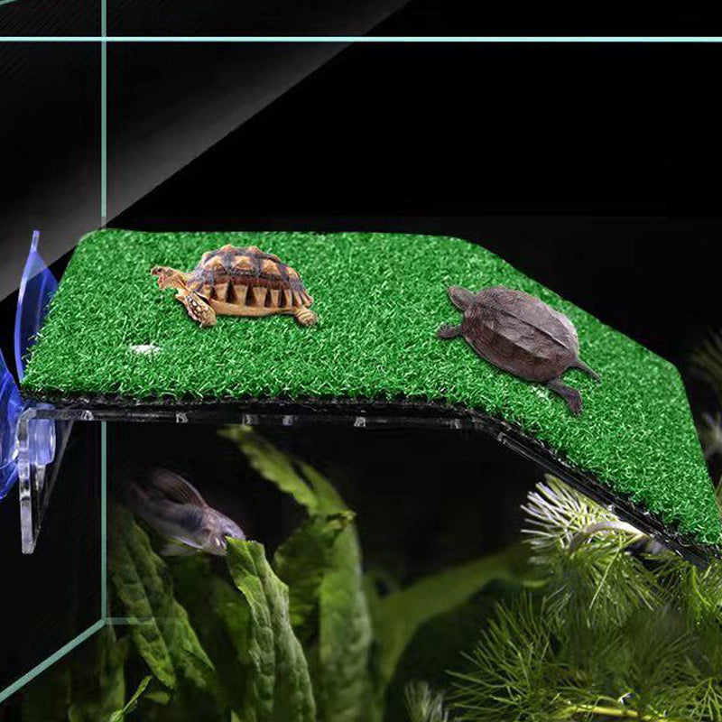 Unique Design: The turtle resting terrace surface is covered with artificial green turf gives traction, which is very attractive to the turtle so they can easily climb onto the platform and bask like they should.
