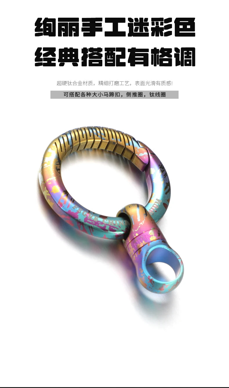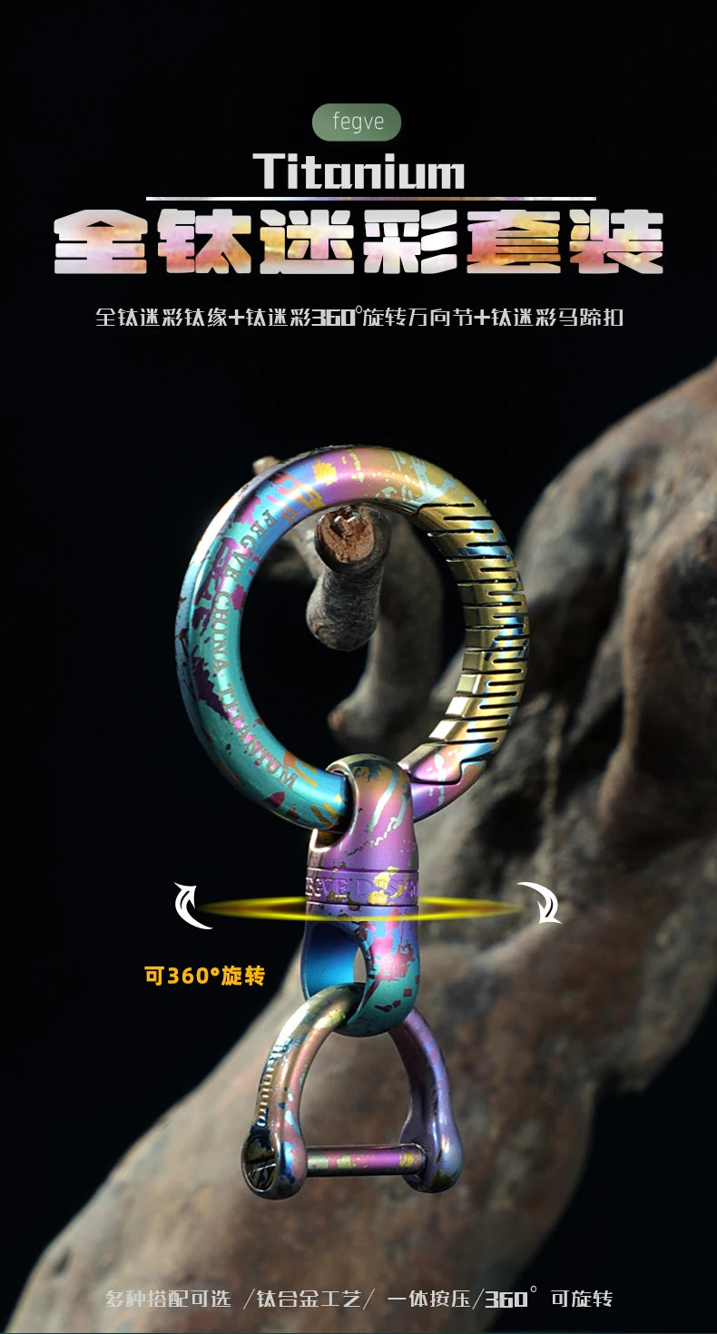 This 360° rotating titanium keychain clip is designed for secure, flexible everyday carry of keys and small accessories. The integrated swivel mechanism allows smooth rotation, reducing tangling and improving access whether attached to belts, bags, or pockets. Crafted from durable titanium with a distinctive anodised finish, the clip offers high strength with a lightweight feel. Its compact form makes it suitable for daily use, outdoor activities, and minimalist EDC setups. The solid ring and locking structure provide reliable attachment while maintaining a clean, modern appearance.