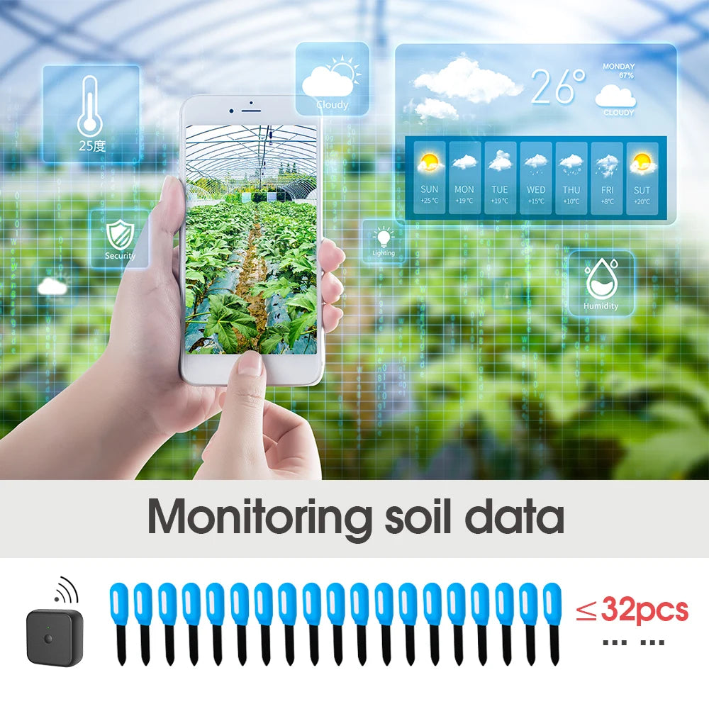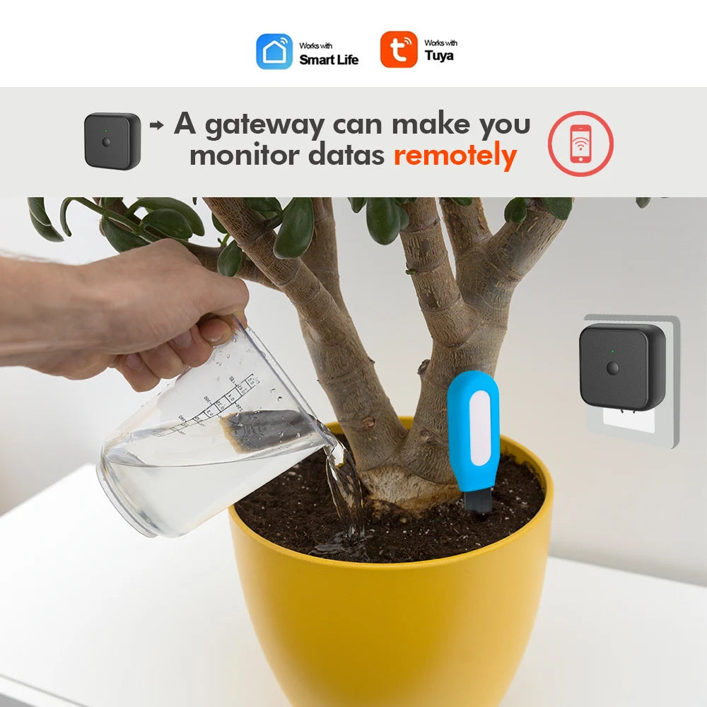 Monitor your plant's environment with Muciakie® N178 Smart Soil Sensor. Get real-time air temperature and soil humidity readings for optimal growth. With Bluetooth 4.1 and a dedicated gateway, adjust conditions remotely. Easy installation, reliable power, and versatile application for various plant settings.