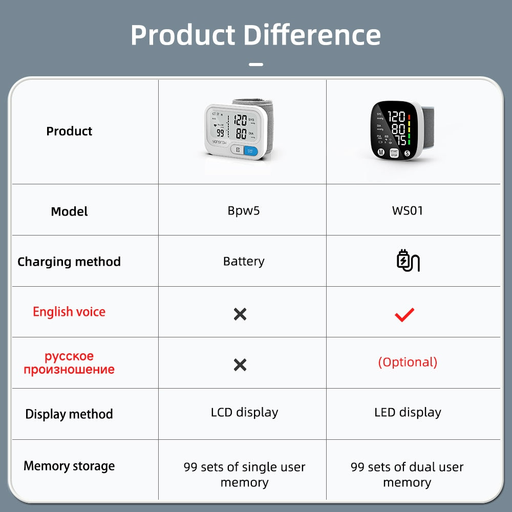 Since blood pressure varies throughout the body, readings will most likely vary from your upper arm to your wrist. All Yongrow blood pressure monitors, whether upper arm or wrist, are certified to international standards and are validated in the same way and have the same accuracy specifications.
