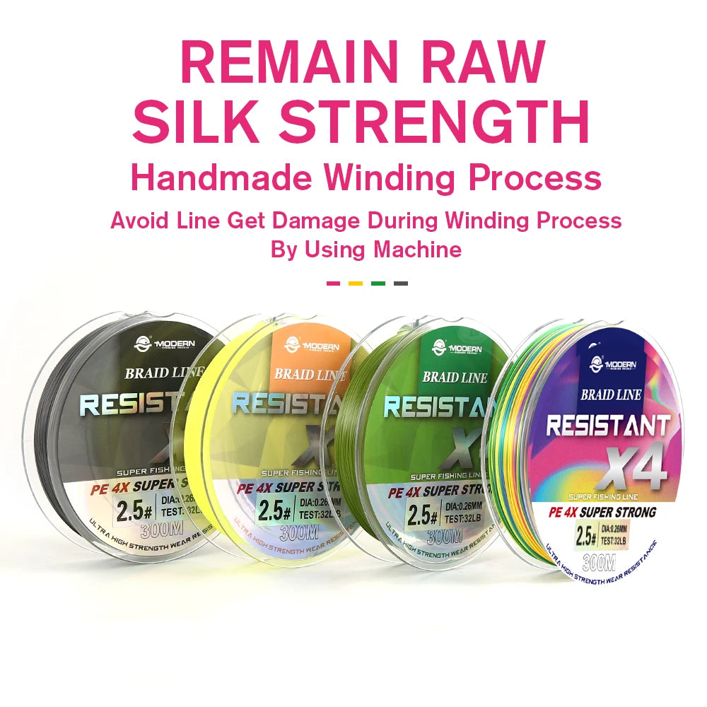 2. 4 Strands PE line, material from Japan, unique braid construction, made of ultra-high strength PE fibers.